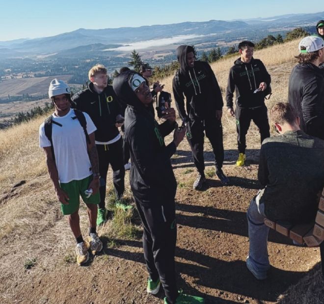 最近,俄勒冈大学男篮的训练课上已经出现了林葳的身影。今天,俄勒冈大学男篮全队去爬山,林葳也出现在队内,穿着统一的服装。