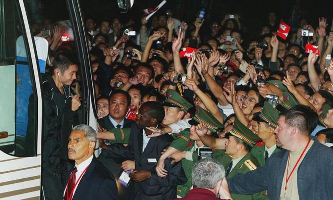 回想21年前NBA首届中国赛,火箭打国王可不是这幅场景。众所周知,火箭队拥有姚明,是中国球迷唯一的主队。NBA为了增加赛事的中国元素,国王队向姚明的前队友刘炜发出试训邀请,并赶在中国赛前夕,开出了一份非保障性的合同,来确保刘炜也能参加中国赛。