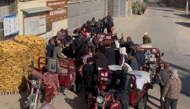 村民们在等待大林林收购自家粮食。图片来源:受访者供图