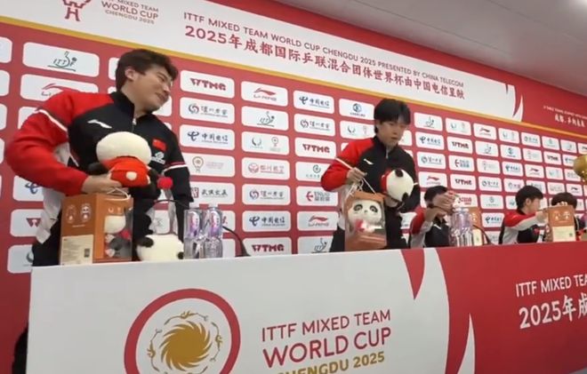 梁靖崑毫不客气地拿了两个拆封的熊猫玩偶,又拿了一个没有拆封的熊猫玩偶,他笑着解释了一句:“主要是家里人多。”梁靖崑已经结婚生娃,显然是给家人带的玩偶。其他国乒队员也纷纷拿走熊猫玩偶,俨然是扫货的架势。国乒将士在场上大杀四方,在场下则是扫货熊猫玩偶。