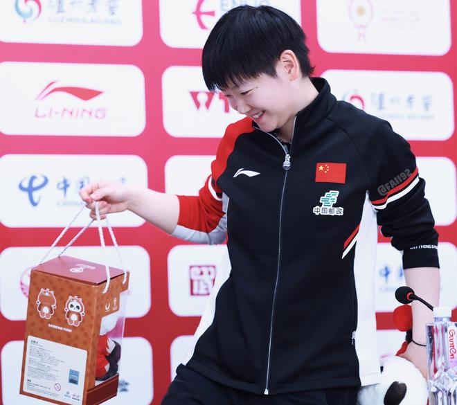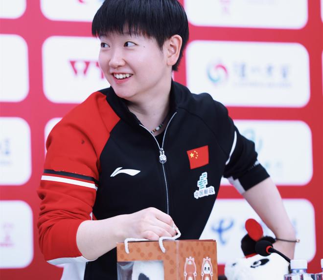 在新闻发布会上,出现了非常有意思的一幕。国乒将士们都对熊猫玩偶爱不释手。孙颖莎也非常喜爱,她手里拿着一个熊猫玩偶把玩着。现场的工作人员也满足了国乒将士们的要求,特意提醒:“桌子上的也可以直接拿走。”孙颖莎回应了一声:“好的。”她笑呵呵地又拿了一个没有拆封的熊猫玩偶。