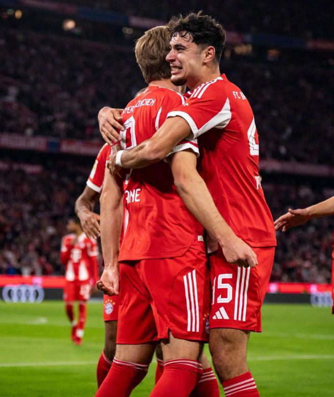 为了能够延续连胜的势头,孔帕尼在这一场万众瞩目的国家德比战,沿用了球队最熟悉的4231阵型,诺伊尔继续首发为南大王镇守龙门,莱默尔、若纳坦塔、于帕梅卡诺和博伊构筑后防,双后腰则是帕夫洛维奇搭档基米希,迪亚斯、凯恩和奥利塞坐镇中场,杰克逊则一个人突前。