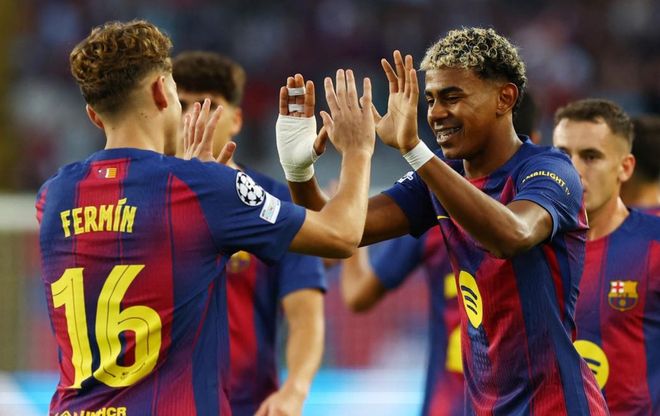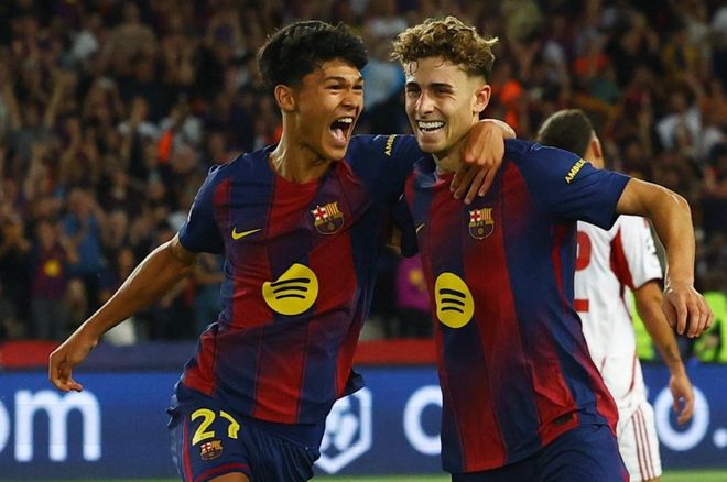 这场比赛刚开始7分钟,巴萨就进球了!亚马尔在禁区内不断过人扣球,费尔明顺势把球横向一拨,起脚射门,球进了!巴萨取得梦幻般的开局。奥林匹亚科斯在第30分钟就不得不进行换人调整,奇基尼奥受伤下场。7分钟后,巴萨再次进球。依然是费尔明的进球,他在禁区内晃开防守球员,抽射破门,梅开二度。半场结束,巴萨2-0领先。