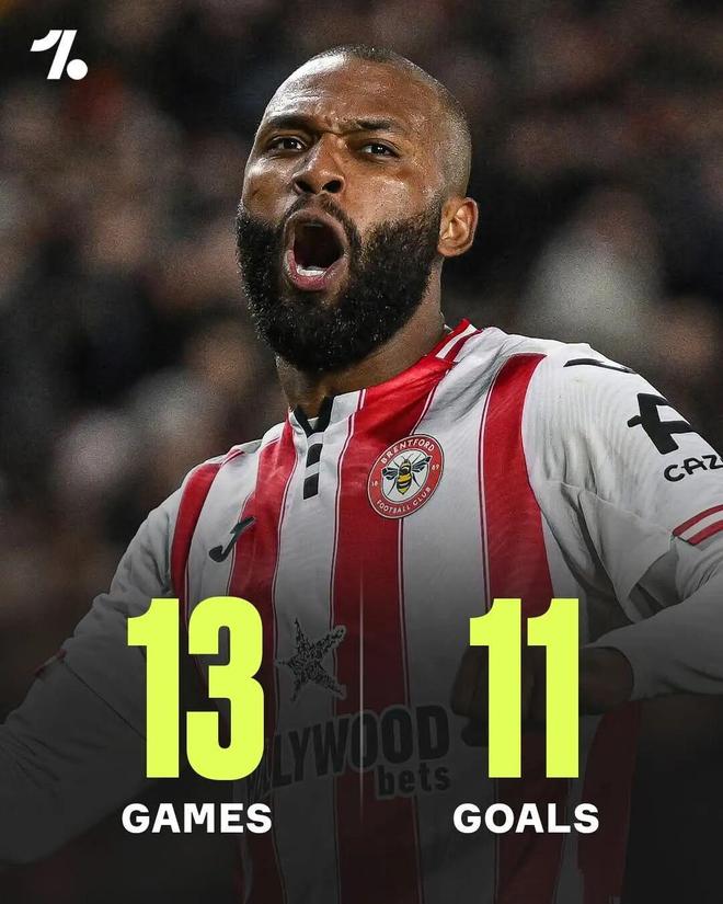 这位巴西的大中锋身价仅2200万欧,身高有1.91米,是小蜜蜂攻城拔寨的利器。他的速度、力量和天生的进球本能帮助布伦特福德在艰难开局后攀升至积分榜第8位——13场比赛中拿下6场胜利。他在此前对阵曼联、利物浦和纽卡时就有过进球。