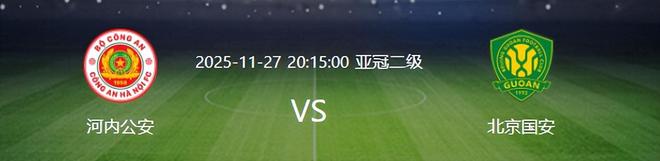 北京时间11月27日晚20:15,亚冠二级联赛E小组第5轮将上演一场令中国球迷无比关注的比赛,中超北京国安做客挑战越南河内公安。