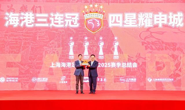 11月29日,上海海港足球俱乐部“海港三连冠 四星耀申城”2025赛季总结会在主场上汽浦东足球场隆重召开。上海市人民政府副市长解冬,上海市人民政府副秘书长周亚明,上海市体育局党组书记、局长徐彬,上港集团党委书记于福林,上港集团党委副书记、总裁宋晓东,著名教练徐根宝,上海市浦东新区副区长徐欣,上海市足球协会主席柳海光,上港集团副总裁、上海海港足球俱乐部董事长张敏,新民晚报社副总编辑杜旻,上海海港足球俱乐部党总支书记、总经理沙良昌,上海海港一线队主教练穆斯卡特,以及海港一线队全体教练员、球员、工作人员,还有众多球迷、媒体和赞助商代表齐聚一堂,共同见证这一承载荣誉与期盼的时刻。